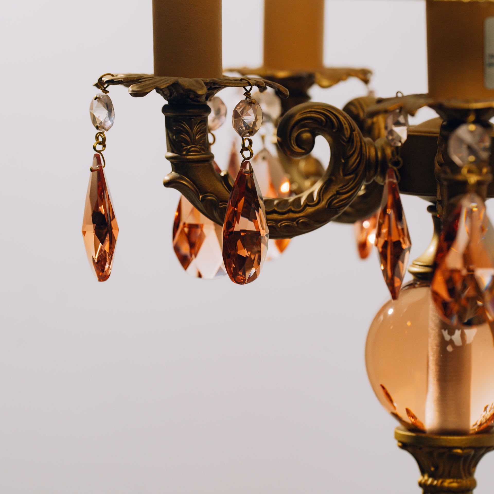Гар аргаар оёсон торгон эмжээр малгай, мурано бөмбөлөг, сваровски унжлагатай ширээний гэрэл
